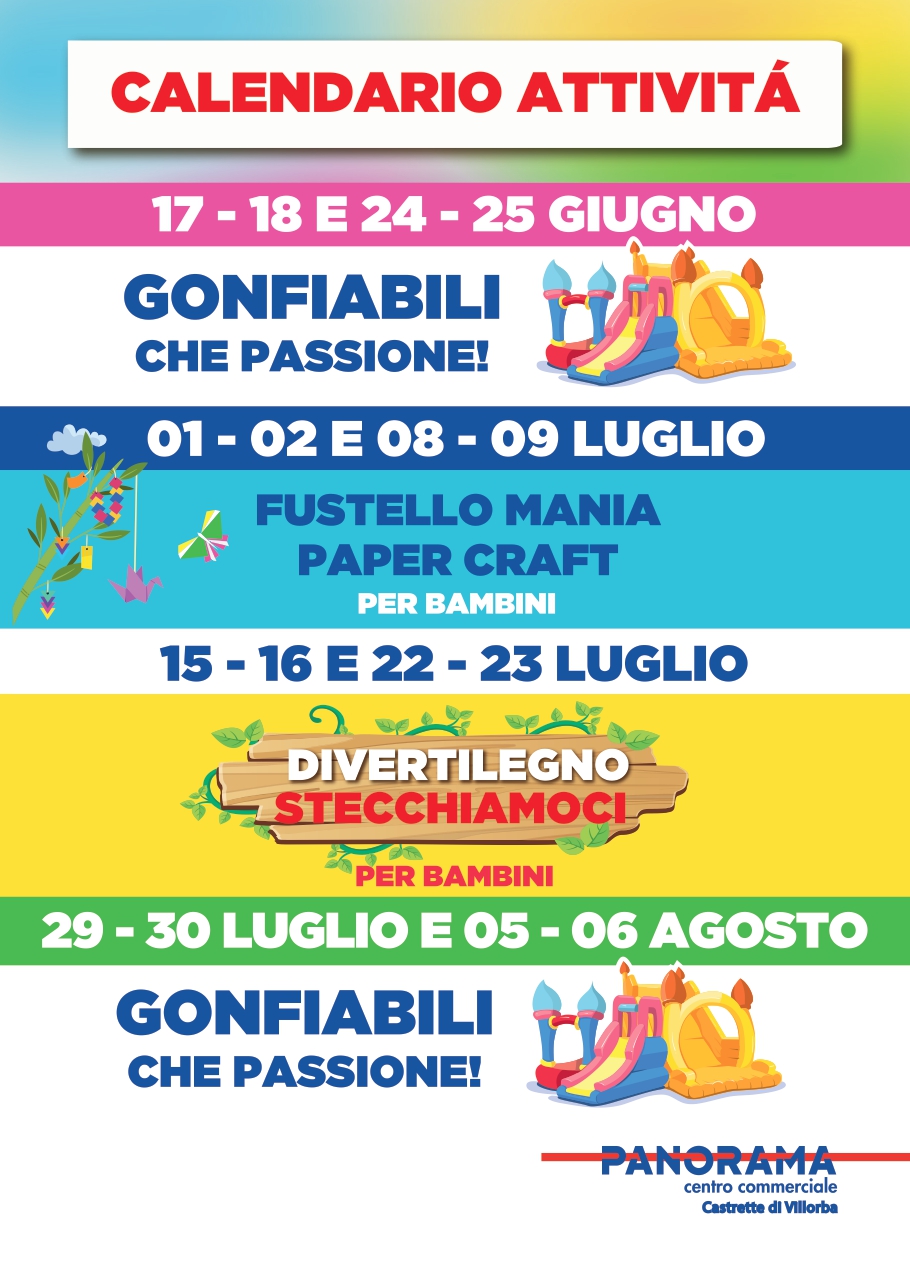 Ecco il calendario di tutte le attività estive che potrete trovare a Panorama Villorba.