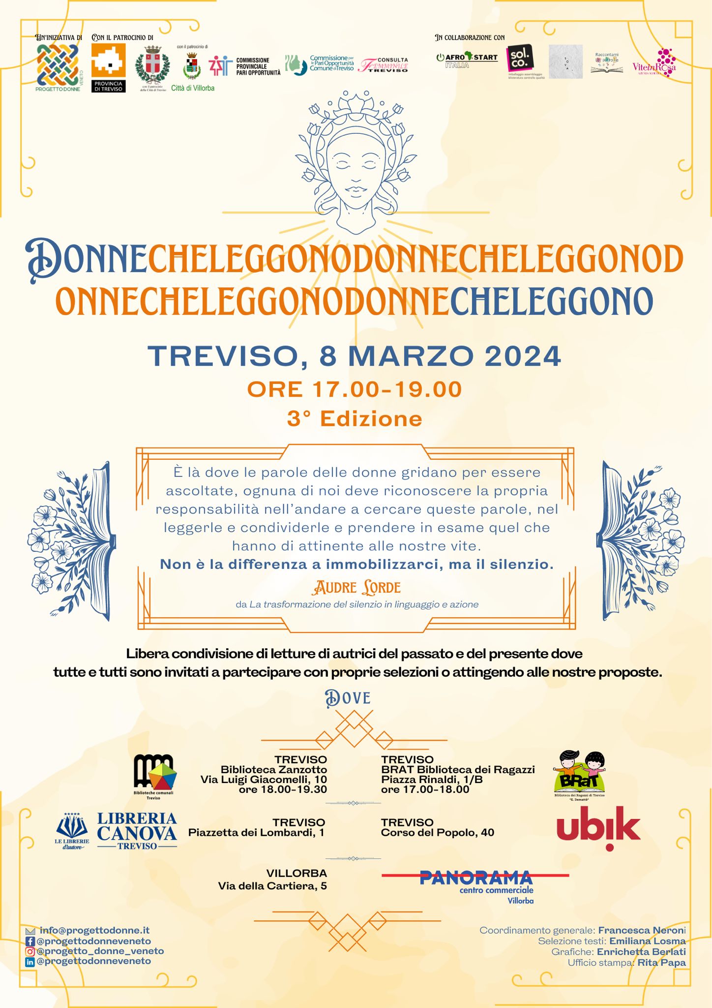 Unisciti a noi per celebrare l’8 marzo con una straordinaria maratona di lettura al CC Panorama Villorba!📚 Venerdì 8 marzo, dalle 17.00 alle 19.00 locale vicino al punto vendita Casa.